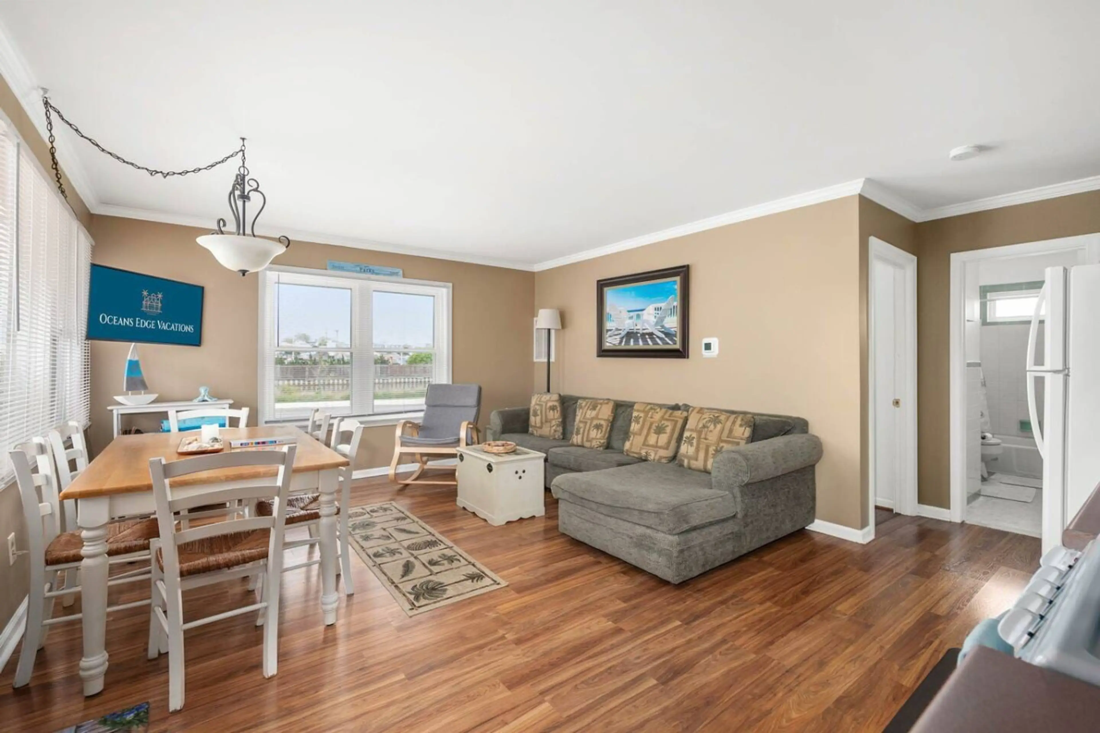 Discover The Seaglass Retreat, a cozy 2-bed, 2-bath retreat in the charming Ocean City community. Stylishly decorated, it offers a comfortable stay just a short walk from the beach and dining spots. Relax on the patio or explore nearby eateries for a perfect beach vacation. Enjoy the serene ambiance...